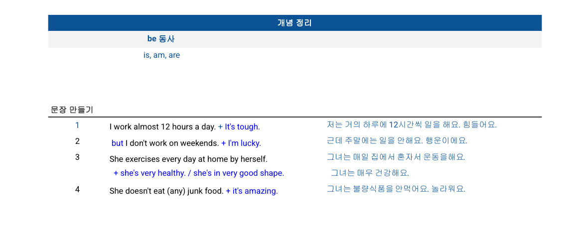 이번에는 be동사 관련 문장을 중심으로 스크립트를 정리했습니다.