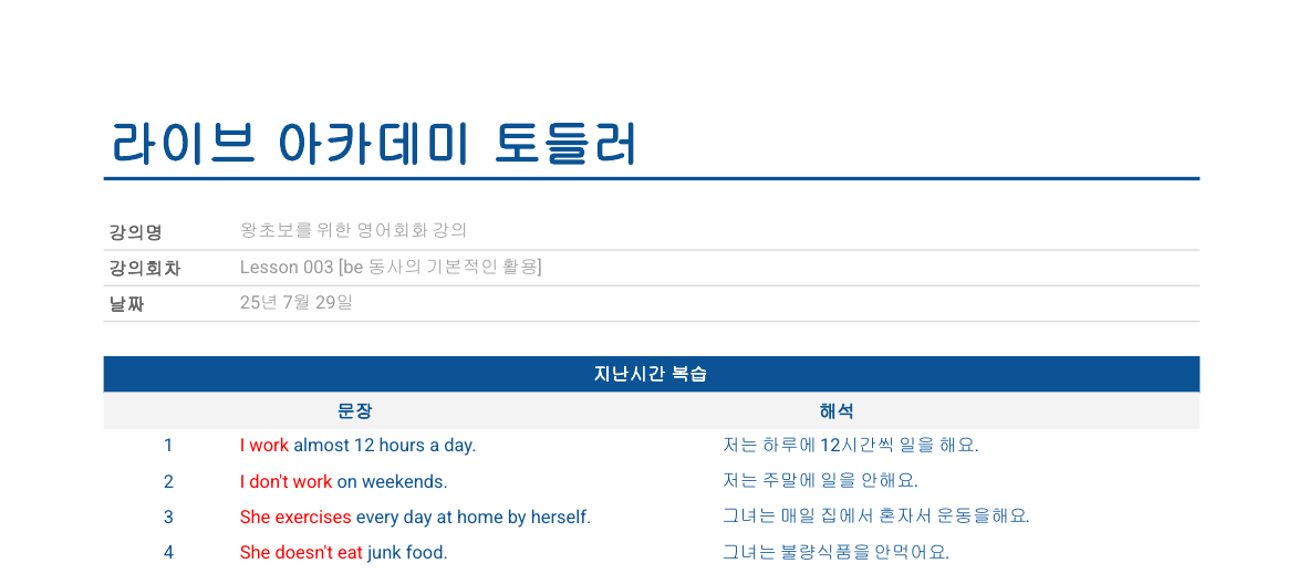[라이브 아카데미 토들러] 003. be동사의 활용 - 노트정리PDF 공유 본문