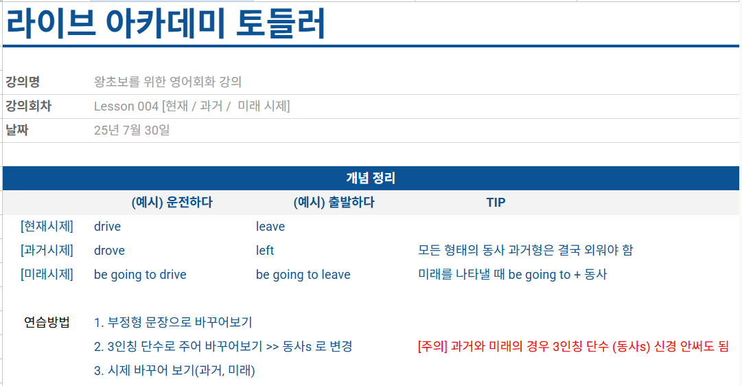 [라이브 아카데미 토들러] 004. 현재/과거/미래 시제 - 노트정리PDF 공유 본문